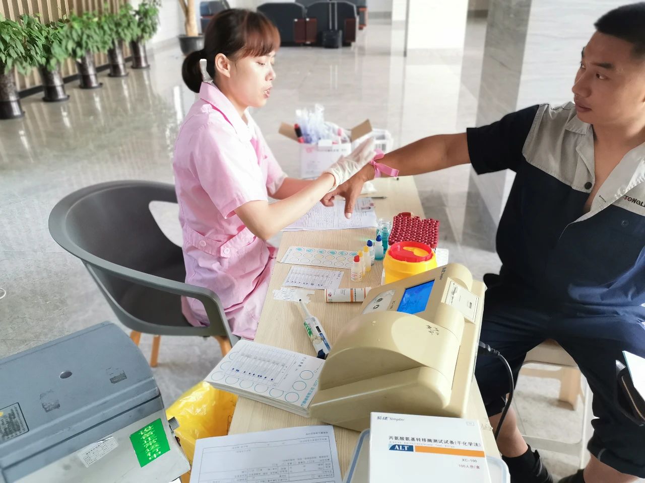 當日一早,在辦公樓大廳已是人頭攢動,二十多名通力員工們排起了長隊,在醫(yī)護人員的解說下逐個填寫獻血登記表,而后是抽血、驗血步驟,驗血合格后進行最終的獻血。
