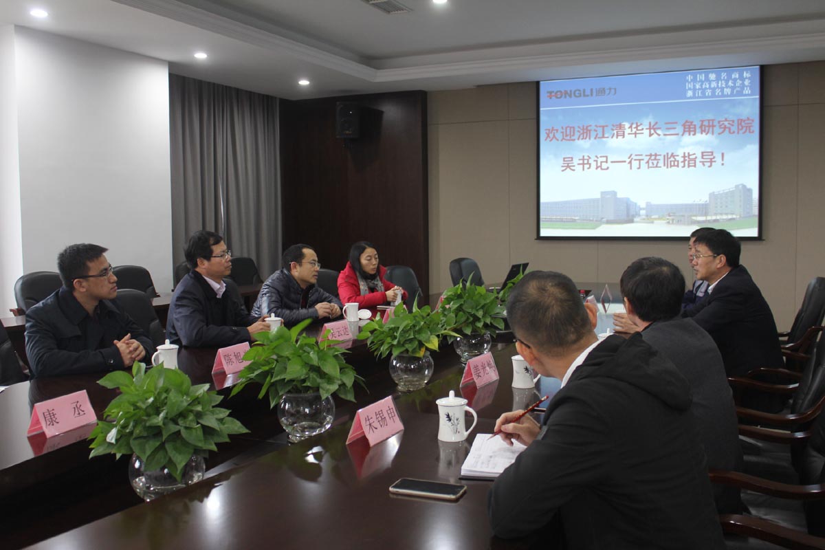 日,浙江清華長三角研究院黨委副書記吳云達(dá)一行在瑞安市副市長林政洪等市領(lǐng)導(dǎo)的陪同下來我司調(diào)研指導(dǎo)工作。通力董事長項(xiàng)建忠攜中高層管理人員接待了來賓。